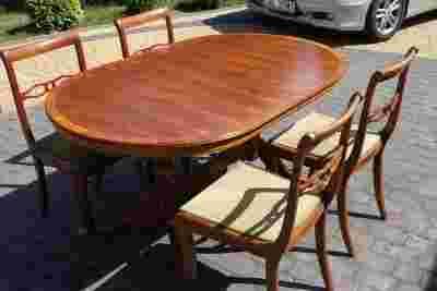 Mam dziś do zaoferowania państwu komplet - stół owalny z 4 krzesłami które z pewnością wzbogacą każde wnętrze w którym się znajdą dodatkowo nadając mu unikalnego stylu, będąc przy tym bardzo komfortowym w użytkowaniu.