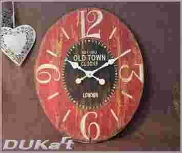 OWALNY ZEGAR ŚCIENNY VINTAGE RETRO CZERWONY
