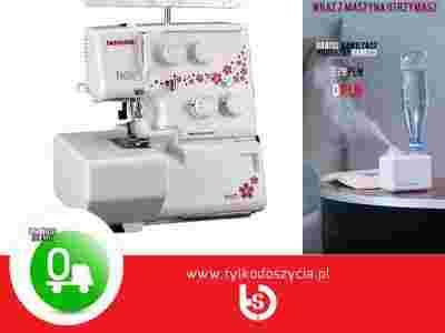 W prezencie zestaw stopek: do ściegu krytego, do wszywania koralików i pereł, 2 stopki do wszywania wypustki (w rozmiarze 1/8" i 3/16") oraz prowadnik do równoległego prowadzenia ściegów. 3 lub 4-nitkowy owerlok z transportem różnicowym.