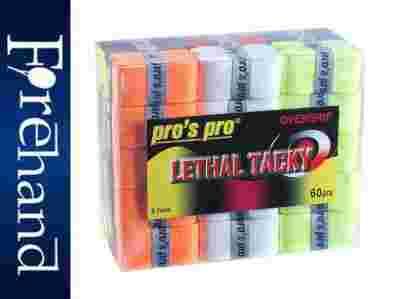 Pro's Pro Lethal Tacky bardzo lepkie owijki wierzchnie zapewniające pewny chwyt. Specjalny materiał i perforacja na połowie oraz lekki bieżnik na drugiej połowie szerokości owijki zapewniają duży komfort i doskonałe "czucie" uchwytu rakiety.
