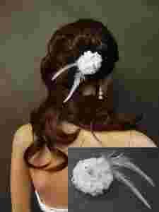 Przedmiotem aukcji jest gustowny stroik ślubny, komunijny w kolorze śnieżno białym. Mocowany