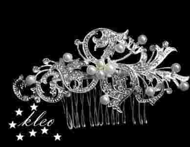 OZDOBA DO WŁOSÓW, GRZEBIEŃ,SREBRNY, ECRU, PERŁY