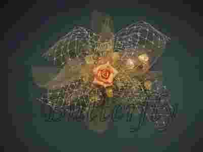 Stroik został wykonany z małej różyczki (3,5cm) . Dodatkowo została ozdobiona tiulem i woalką
