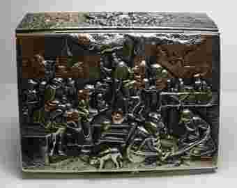 OZDOBNA SZKATUŁKA KASETKA DENMARK . SZKATUŁKA POSREBRZANA – POKRYTA SREBREM. WYMIARY – WYSOKOŚĆ : 4,6 CM. SZEROKOŚĆ Z BOKU: 9,75 CM. SZEROKOŚĆ Z PRZODU : 14 CM. PO PRAWEJ STRONIE NA WIECZKU SYGNATURA – PRAWDOPODOBNIE IMIENNIK AUTORA , ZNAK FIRMOWY I NAPIS DENMARK. SZKATUŁKA OTWIERANA NA ZAWIASIE , WEWNĄTRZ WYKŁADANA JEST DRZEWEM. PIĘKNE OZDOBNE WYPUKŁE OZDOBY . KASETKA W WYJĄTKOWO PIĘKNYM STANIE ZACHOWANIA ******************************************** PO ZAKOŃCZENIU AUKCJI PROSZĘ ZAPOZNAĆ SIĘ Z POWIADOMIENIEM „ALLEGRO” , KTÓRE ZAWIERA NUMER KONTA I WSZELKIE NIEZBĘDNE INFORMACJE POTRZEBNE DO SFINALIZOWANIA AUKCJI. NA TERENIE KRAKOWA MOŻLIWY ODBIÓR OSOBISTY ( STAROWIŚLNA 29) ZASTRZEGAM SOBIE PRAWO ZAKOŃCZENIA AUKCJI PRZED CZASEM JEŻELI PRZEDMIOT NIE JEST ZALICYTOWANY. ZAPRASZAM NA INNE MOJE AUKCJE. (email - [zasłonięte]@poczta.fm) TEL . KONTAKTOWY – 888 [zasłonięte] 007