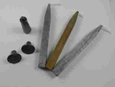 W zestawie znajdują się dwie metalowe pieczątki do odciskania w wosku z odkręcanym uchwytem.