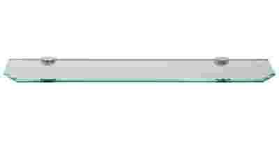 Półka szklana ze ściętymi rogami wykonana ze szkła bezbarwnego o grubości 10 mm. Wyposażona w masywne uchwyty w kolorze chromu.