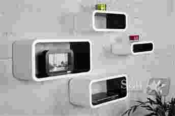 PÓŁKI CLUB CUBE BIAŁO CZARNE ZESTAW POCZWÓRNY