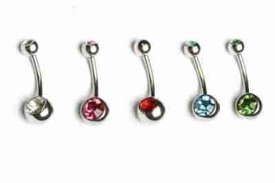 PĘPEK piercing 5 kolorów z kryształkami
