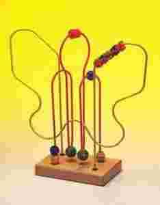 Pętle zaprojektowano w kształcie skrzydełek motylka. Zabawka wykonanjest z wysokiej jakości lakierowanego drewna oraz bezpiecznej dla dzieci farby odpornej na dziecięcą ślinę. Metalowe pętle pokryte są identyczną farbą. Dziecko przesuwając kulkami po pętlach rozwija koordynacje ruchową i motorykę - to najlepsza zabawka edukacyjna dla dzieci w wieku 2 - 6 lata.