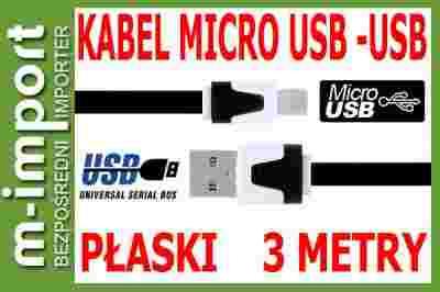 Płaski 3 metrowy Kabel MicroUSB Samsung Sony Nokia