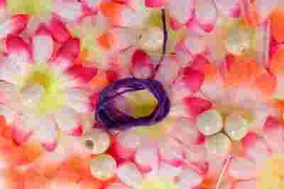 płatki kwiatowe, koraliki, sznurek, plastkowe rureczki do przewlekania