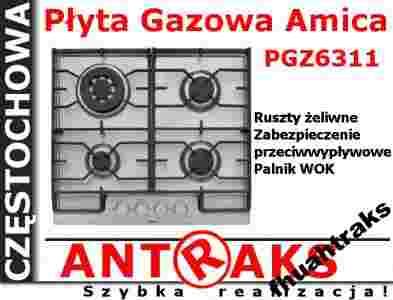 Kuchnie gazowe, gazowo - elektryczne i płyty gazowe Amica posiadają elektryczny zapalacz gazu. Wystarczy przekręcić pokrętło, a wybrany palnik automatycznie zapali się.