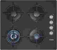 4 palniki gazowe - 1 Wok, 2 standardowe, 1 oszczędny, zabezpieczenie przeciwwypływowe gazu, zapalarka, 4 pojedyncze emaliowane ruszty, płyta podpalnikowa ze szkła hartowanego, pokrętła z prawej strony