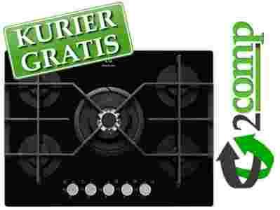 Płyta gazowa do zabudowy, 5 palnikow różnej wielkości, ruszty żeliwne, kolor czarny (linia Inspiration).