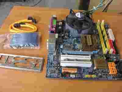 Do płyty dodaję zaślepkę tylną i nowe kable SATA i ATA.