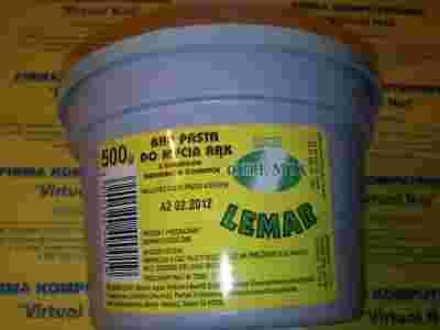 Proponujemy pastę warsztatową do czyszczenia rąk. Jest to profesjonalny produkt do usuwania silnych zabrudzeń dłoni i skóry, powstających podczas różnych prac - szczególnie polecany do warsztatów samochodowych. Pasta oparta jest na piasku kwarcowym, który wnika w zabrudzone mikropory, powodując ich dokładne oczyszczenie. Pasta ta posiada kolor żółty i przyjemny cytrynowy zapach.