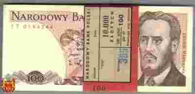 Paczka bankowa 100 zł 1986 r. Seria TT - UNC