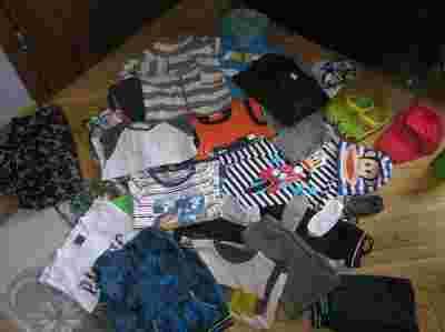 Przedmiotem licytacji jest paczka ubranek dla chłopca w rozmiarze 104-110 cm.