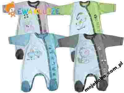 Pajacyk jest rozpinany wzdłuż całego ubranka (brzuszka i nóżek) na napki.