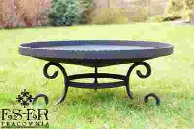 Palenisko stalowe z elementami kutymi, ozdobny rant dodaje uroku, a przy tym świetnie pasuje do robionego przeze mnie trójnogiego grilla.