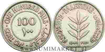 Palestyna, 100 milsów, 1940 rok, Ag