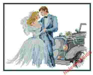 Pamiątka ślubna - Para młoda i auto - metryczka