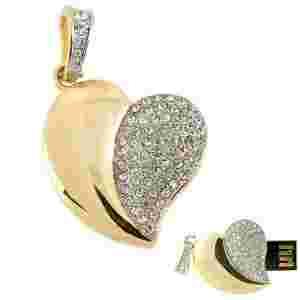 Pamięć USB 4GB w kształcie serca złote i srebrne