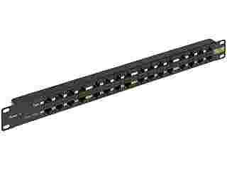 Na froncie panelu znajdują się dwa rzędy gniazd RJ-45. Oznaczone na biało ("Data") są gniazdami wejściowymi dla sygnału, natomiast oznaczone na żółto ("Data + Power") to wyjścia do urządzeń końcowych. Panel jest w stanie dodać zasilanie do 16 przewodów UTP.
