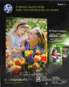 »Papier HP Everyday Photo pozwala codziennie realizować wydruki fotograficzne z pięknymi kolorami, przy niskich kosztach. Błyszczący, zdatny do recyklingu papier szybko wysycha i można go stosować w każdej drukarce atramentowej. Oprogramowanie HP Photo Creations umożliwia tworzenie kalendarzy, sześcianów ze zdjęciami itd.