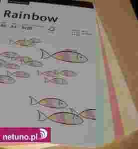 Rainbow, to wysokiej jakości, kolorowy papier, bezdrzewny, barwiony w masie, o szerokim wachlarzu kolorystycznym. Zalecany do wydruków faksowych, korespondencji oraz zaproszeń i ulotek. Pakowany w przeźroczyste opakowanie. Dostępny w 12 kolorach, w gramaturze 80 i 160 g/ m2.