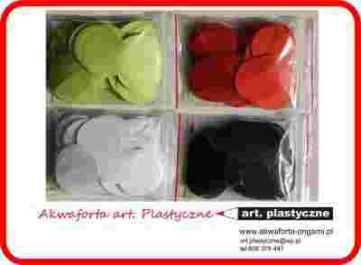 Koła origami 4,7 cm 4 op. - 4 kolory: czerwony, czarny, jasnozielony, biały