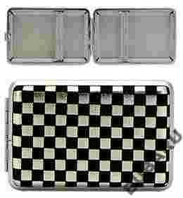 Metalowa papierośnica z ozdobnym wzorem szachownicy