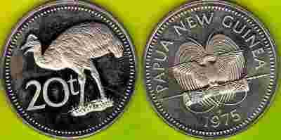 PAPUA NEW GUINEA 20 Toea 1975 r. Proof.