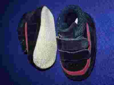 Paputki zamszowe granatowe z różowym 12 cm