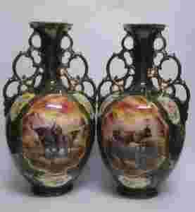 PARA WAZONÓW, XIXw, MAJOLIKA, ST.ZJEDNOCZONE,40 CM
