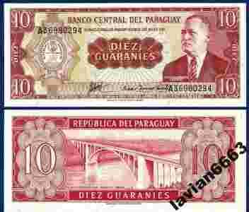 PARAGWAJ 10 GUARANIES 1952 r. P-196b SER.A UNC