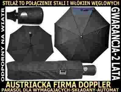 PARASOL DOPPLER CZARNY AUTOMAT MĘSKI CLIP CARBON