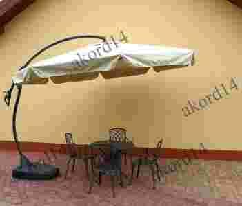 Dodatki w kolorze antracytowym; podstawa plastikowa (do napełnienia wodą lub piaskiem) - kolor antracyt ; aluminiowe wysięgniki dodatkowo stabilizujące parasol; regulowane pochylenie parasola, korbka umożliwiająca złożenie parasola.