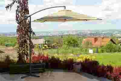 PARASOL OGRODOWY 3M NA WYSIĘGNIKU BOCZNY PASY ZIEL