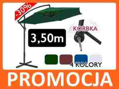 PARASOL OGRODOWY WYSIĘGNIKU 3,5M 4 KOLORY + KORBKA
