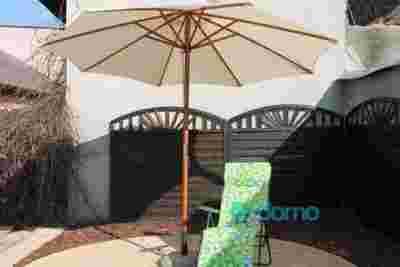Parasol ogrodowy Poly o średnicy czaszy 3 m, stelaż wykonany z drewna o średnicy 38 mm. Czasza parasola ośmiokątna w kolorze kremowym, wykonana z poliestru została dodatkowo wyposażona w otwór wentylacyjny dla lepszej cyrkulacji powietrza. Wysokość parasola wynosi 2,7 metra. Parasol jest sprzedawany bez podstawy. Na innych naszych aukcjach istnieje możliwość dokupienia podstawy.