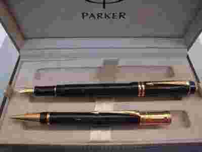 Zestaw Pióro wieczne + Długopis Parker Duofold czarny GT International (platerowane złotem wykończenia)