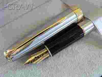Pióro stalowe - złocone wykończenia, platerowane 23 karatowym złotem. Pióro wykończone z nierdzewnej stali z metalicznym połyskiem, szczotkowane, z lekką fakturą, polerowane dla uzyskania przyjemnej w dotyku, satynowej powierzchni. Pióro wyposażone w dwukanałowy system podawania atramentu. Możliwość użycia tłoczka przystosowanego do napełniania atramentami w butelkach, jak również może być używane z nabojami atramentowymi.