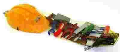 pas z narzędziami kaskiem mały majsterkowicz