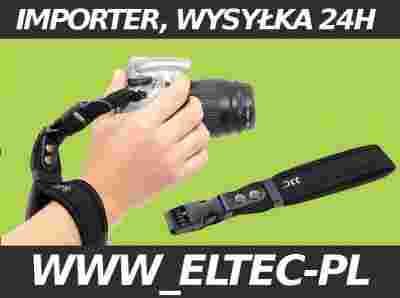 Wytrzymały i elastyczny pasek nadgarstkowy do aparatów fotograficznych.