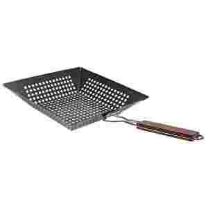Patelnia pozwoli Ci przypiec ziemniaki podczas grillowania pozostałego jedzenia. Doskonała do mięsa, ryb, roślin okopowych i warzyw. Drewniana rączka. Wymiary: Dł:54xSzer:30 cm. Masa: 800 g.