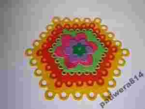 Kwiatek : większy mieści się w kole o średnicy 4cm ; mniejszy 2,7cm ; najmniejszy 1,4cm
