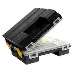 Organizer Tandem C 200 TWIN posiada funkcję łączenia dwóch takich samych produktów w jedną walizeczkę. Wewnątrz posiada przegrody dodatkowo wyposażone w pojemniczki na drobiazgi, które można pojedynczo wyjmować.