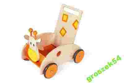 Fantastyczna zabawka dla najmłodszych: drewniany pchacz z uroczą żyrafą, będący zarazem chodzikiem i wózkiem.