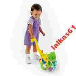 Sympatyczny gepard "rośnie" wraz z dzieckiem. Oferuje atrakcyjną zabawę zarówno siedzącemu jak i chodzącemu już samodzielnie maluchowi. Zachęca do ruchu i aktywności. Przezroczysty bęben zawiera 2 kulki z dzwoneczkami. Dziecko może uderzać w bęben i kręcić nim siedząc - uruchamia wtedy melodyjki i efekty dźwiękowe, a kulki dzwonią wesoło skacząc wewnątrz bębna i sprawiając dziecku mnóstwo radości. Gdy maluszek zacznie chodzić, może wyciągnąć ogon geparda, który zmienia się w wygodną rączkę do pchania zabawki. Można wtedy jeździć po podłodze - do przodu, do tyłu, słuchając dzwoniących kuleczek lub 3 melodyjek i efektów dźwiękowych.